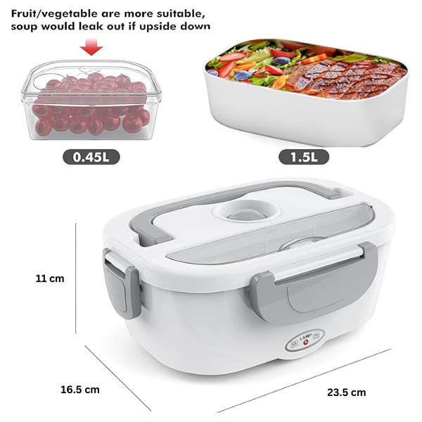 2 izņemamie PP nodalījumi uztur jūsu pamatēdienu un piedevas atsevišķi – un pēc tam abi dodas tieši uz trauku mazgājamo mašīnu. Darbojas birojā, automašīnā, būvlaukumā vai jebkurā telpā, kur ir kontaktligzda.