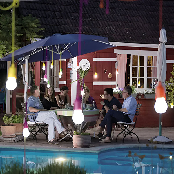 Neatkarīgi no tā, vai vēlaties uzlabot iekštelpu interjeru vai piešķirt šarmu āra pasākumu norisei, HALOGLO piedāvā gudru un stilīgu risinājumu. Katrā komplektā ietilpst spuldzītes izlases spilgtās krāsās – rozā, zaļā, dzeltenā un zilā krāsā -, kas piešķir apgaismojumam rotaļīgu un krāsainu noskaņu. Šīs jautrās krāsas var izgaismot jebkuru vidi, piešķirot jūsu interjeram jautru noskaņu.