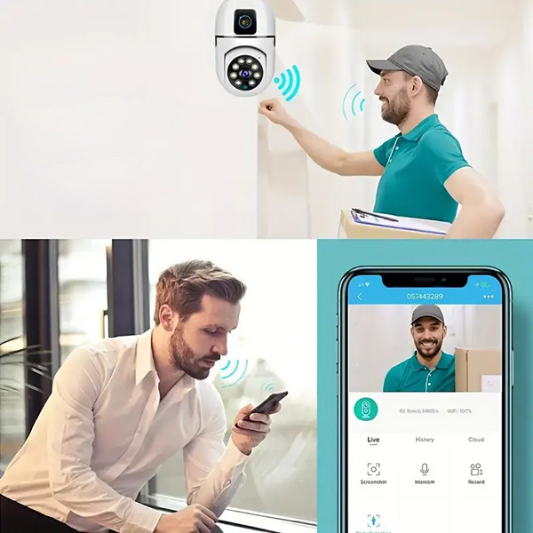 Izmantojot BULBCAM interkomu skaļruni, varat runāt tieši caur mobilo tālruni ar jebkuru, kas atrodas aiz durvīm. Varat arī dot norādījumus piegādes personālam vai pat vadīt viesus, ja esat aizņemts vai prombūtnē, tādējādi ļaujot ērti pārvaldīt apmeklētājus no jebkuras vietas.