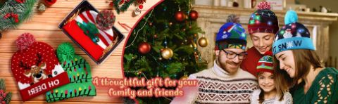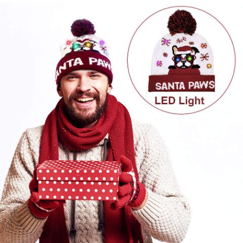 XBEANIE ar Ziemassvētku briežu un sniegavīru dizaina rakstu un ar LED lampiņām, kas atbilst svētku vajadzībām un skaistai modei.
