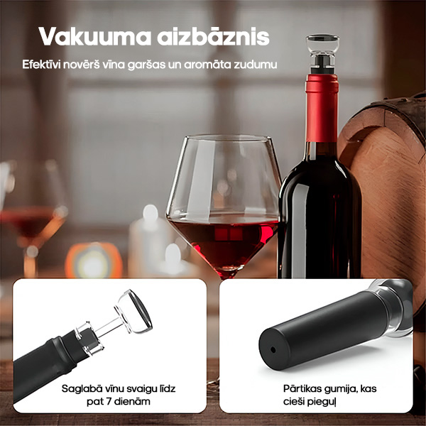🍷 Vakuuma aizbāzni bloķē aromātu uz vairākām dienām