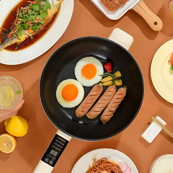 Šī elektriskā panna ļauj pagatavot pilnvērtīgus ēdienus bez plīts, ideāli piemērota jebkurai telpai.