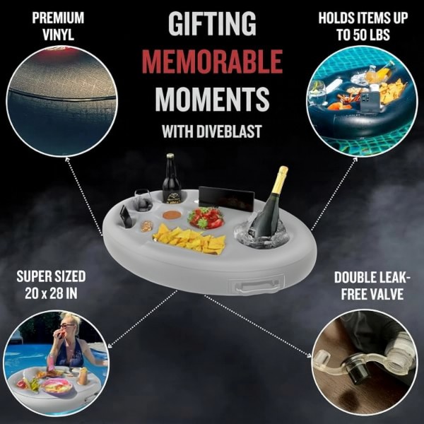 Dizainēts ar 4 dzērienu turētājiem un 4 papildu nodalījumiem, šis peldošais paliktnis piedāvā daudz vietas dzērieniem, uzkodām un citām lietām.