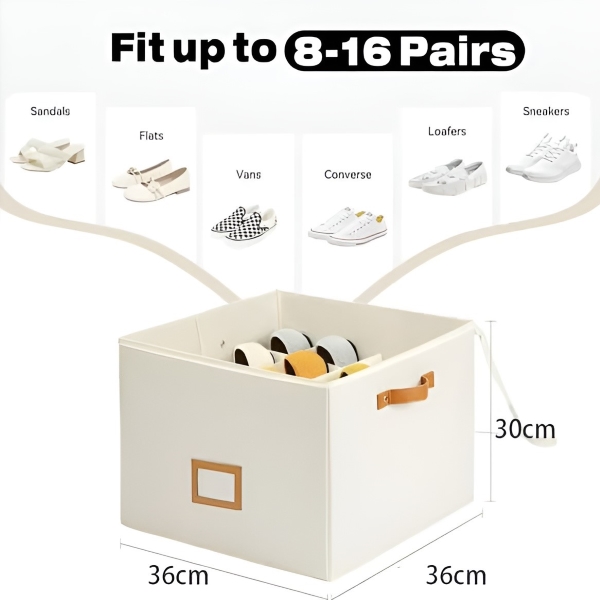 SHOVERA apavu organizators ir paredzēts 8–16 pāriem apavu, tostarp sandales, čības un sporta apavi, kompakta izmēra 36x36x30 cm. Tā salokāmais dizains nodrošina ērtu uzglabāšanu, kad tas netiek lietots, padarot to ideāli piemērotu mājām, kopmītnēm un sezonālajiem apaviem.