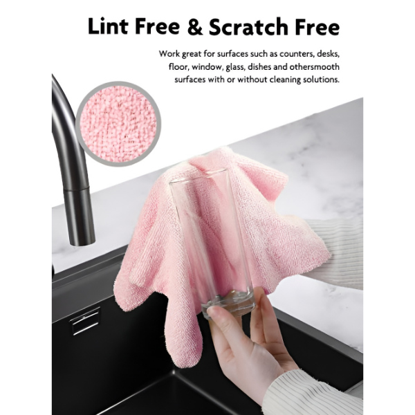 Augstas kvalitātes mikrošķiedras drāna uzsūc ūdeni, eļļas, putekļus un traipus, atstājot virsmas nevainojami tīras un bez švīkām.