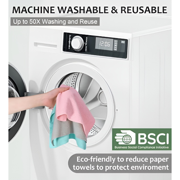 Mazgājams un atkārtoti izmantojams audums palīdz samazināt vienreizlietojamo papīra dvieļu patēriņu, tādējādi saudzējot vidi.