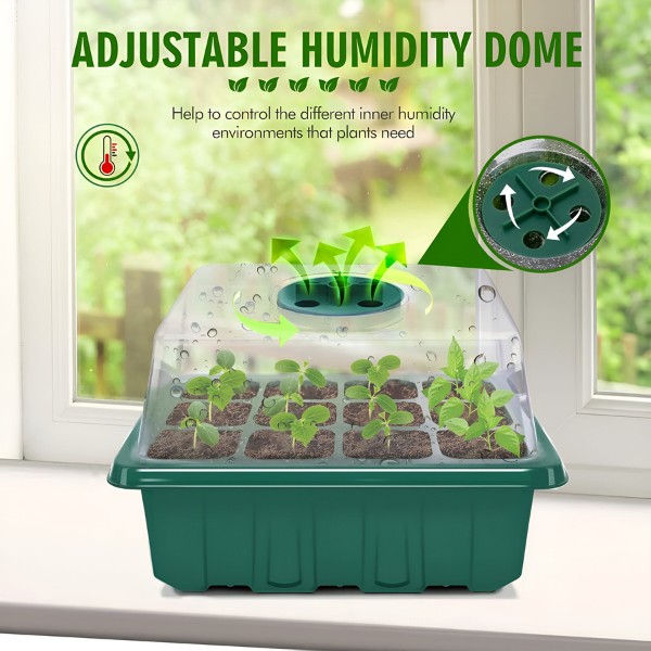 Katrai paplātei ir 12 caurumi un vāks ar ventilācijas slēdzi. Tagad jūs varat kontrolēt mitruma līmeni un nodrošināt labāko vidi jūsu stādiem. Audzējiet veselīgas, labi aerētas saknes stiprākiem augiem.