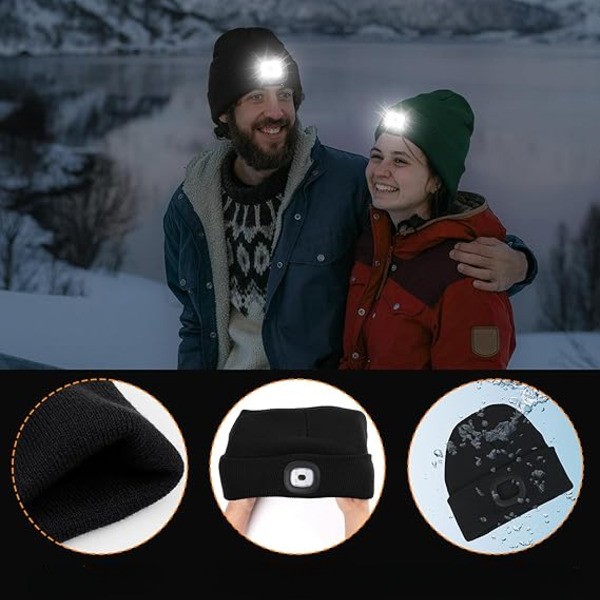 Palieciet silti un redzami aukstās, tumšās naktīs ar mūsu inovatīvo LEDBEANIE. Apgaismojiet savas vakara pastaigas vai āra aktivitātes bez piepūles un droši.