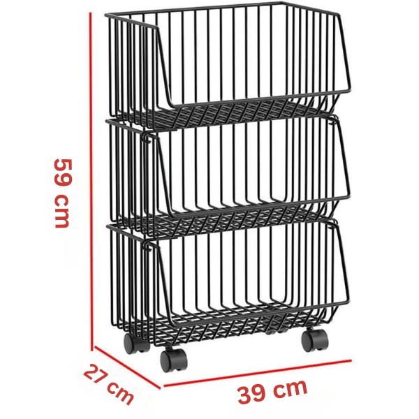 Uzglabājiet dārzeņus, augļus un pieliekamos produktus sakārtotus un sasniedzamus. Trīs regulējamie grozi ļauj viegli pielāgot virtuves uzglabāšanas vietu, vienlaikus saglabājot sakoptu izskatu.