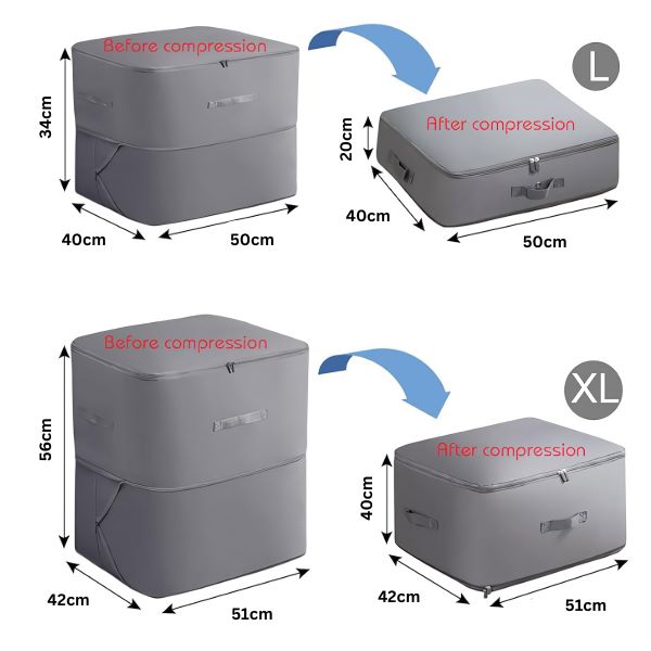 Viegli saspiediet drēbes, segas un citus priekšmetus bez vakuuma, atbrīvojot daudz papildu vietas jūsu koferī vai skapī.